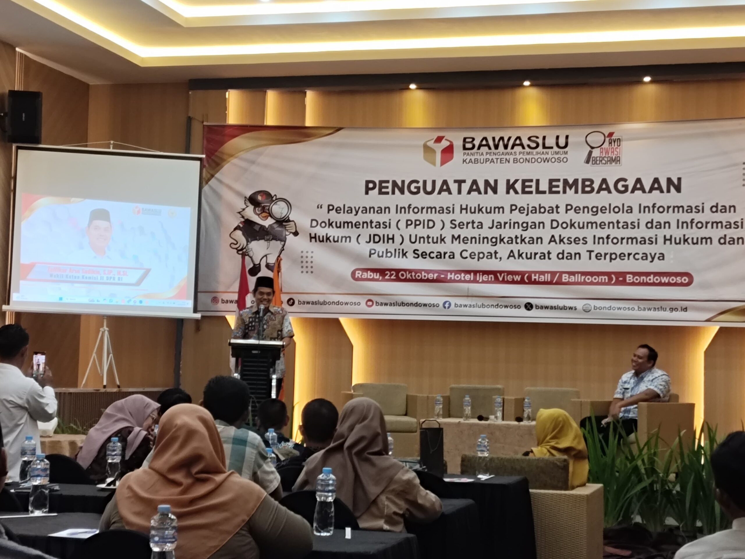 Komitmen tersebut disampaikan dalam kegiatan Penguatan Kelembagaan bertema “Pelayanan Informasi Hukum PPID dan JDIH untuk Meningkatkan Akses Informasi Hukum dan Publik secara Cepat, Akurat, dan Terpercaya” yang digelar di Hotel Ijen View Bondowoso, Rabu (22/10/2025).