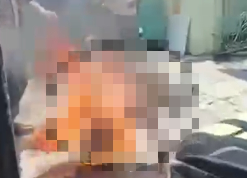 Teriakan itu memicu reaksi warga sekitar yang kemudian mengejar dan berhasil menangkap pria tersebut. Ia kemudian diikat di tiang listrik sambil menunggu petugas kepolisian datang. Namun sebelum dibawa oleh polisi, tiba-tiba api membakar tubuh pria itu.