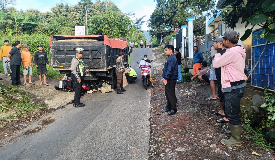 “Dump truck mengalami patah as roda belakang saat di tanjakan sehingga kendaraan mundur. Dalam kondisi itu, pengemudi diduga kurang mampu menguasai kendaraan hingga terjadi benturan dengan pengendara di belakangnya,” jelasnya.