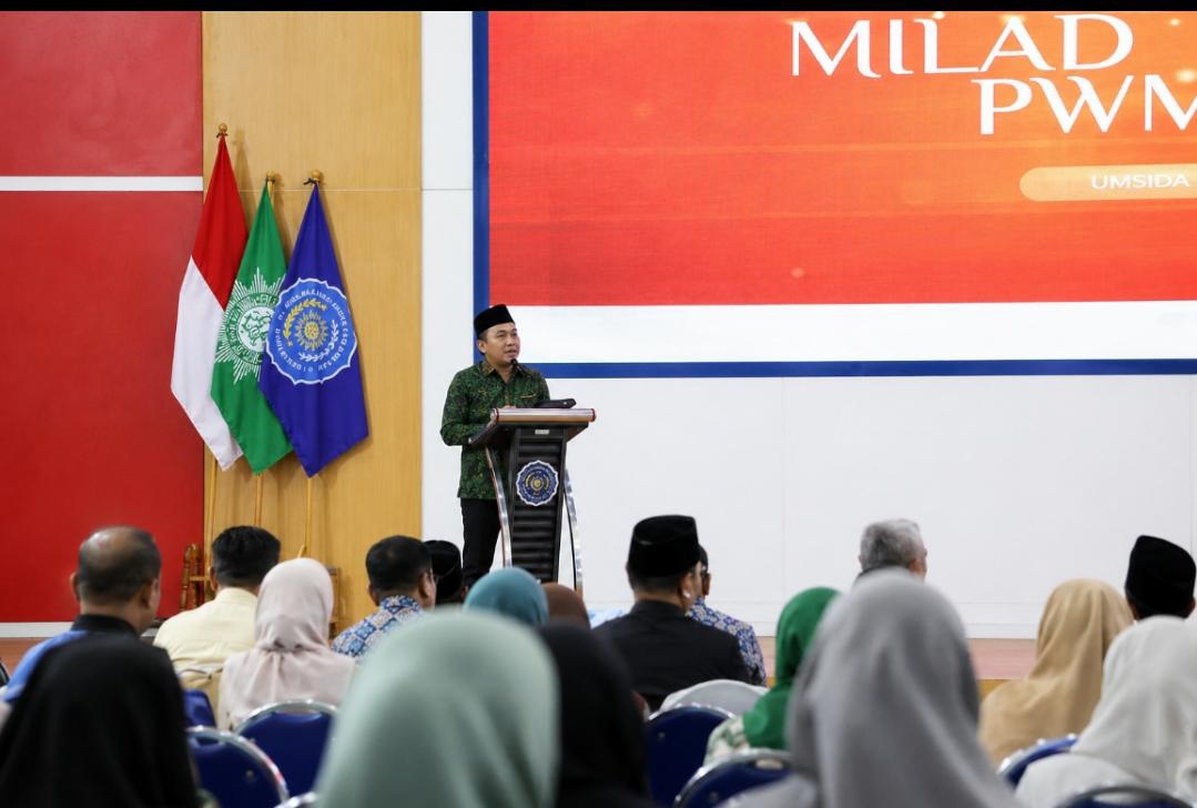 Wakil Wali Kota Malang, Ali Muthohirin, menyampaikan keynote speech dalam Resepsi Milad 1 Dekade PWMU.CO di Auditorium KH Ahmad Dahlan Universitas Muhammadiyah Sidoarjo. (Foto: Dok. Pemkot Malang)