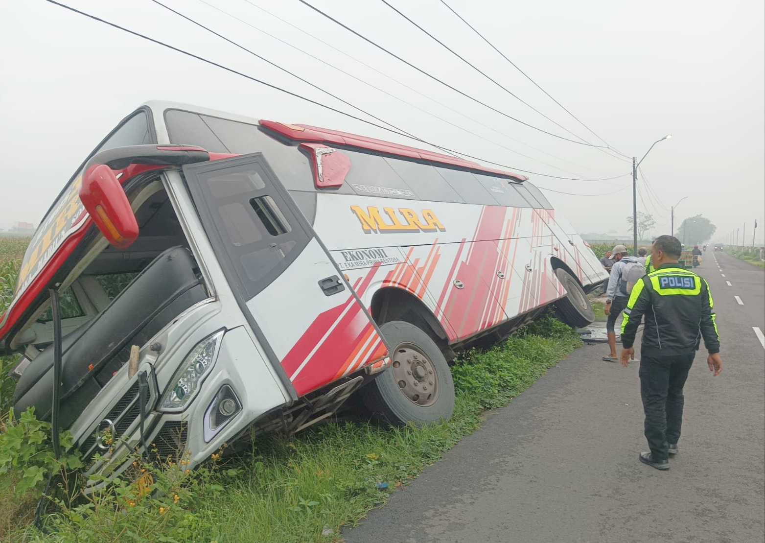 “Bus dari arah timur ke barat, sesampainya di TKP oleng dan masuk ke parit,” ujar Ipda Siswanto.