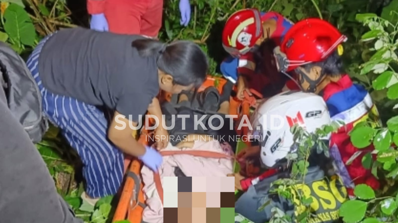 Petugas dan relawan harus turun ke area bawah jembatan untuk memastikan kondisi korban. Dari hasil pemeriksaan awal, korban dinyatakan masih hidup namun mengalami luka serius.