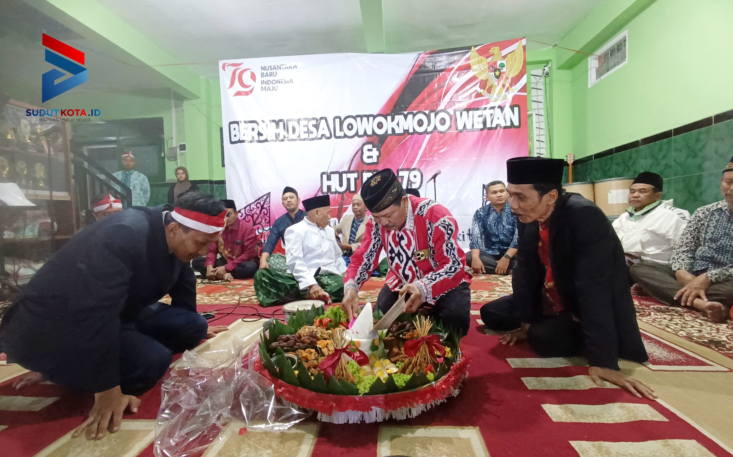 Potong tumpeng di malam tasyakuran kemerdekaan RI ke-79 RW 01, Kelurahan Mojolangu, Kota Malang. (Foto: Sudutkota.id)