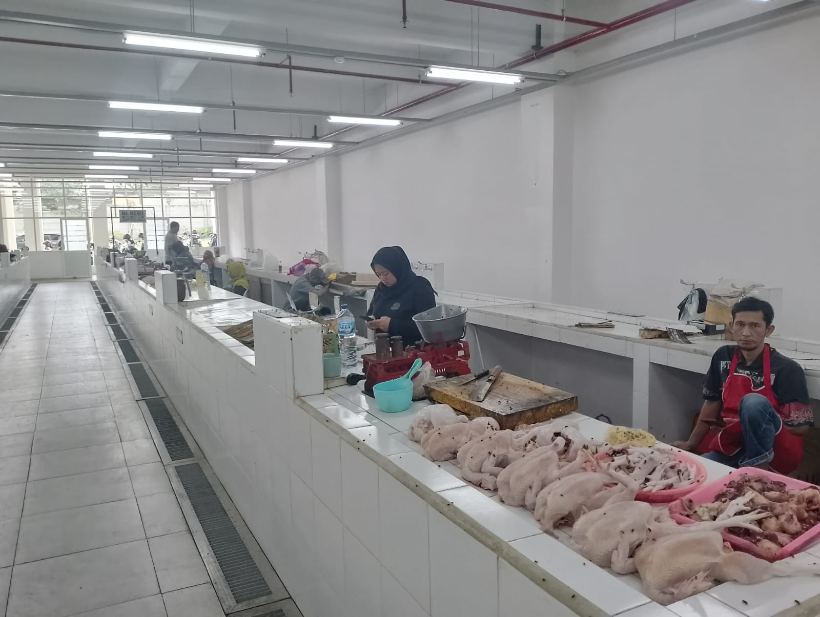 Suasana lapak pedagang daging ayam di Pasar Induk Among Tani Kota Batu. (Dn)