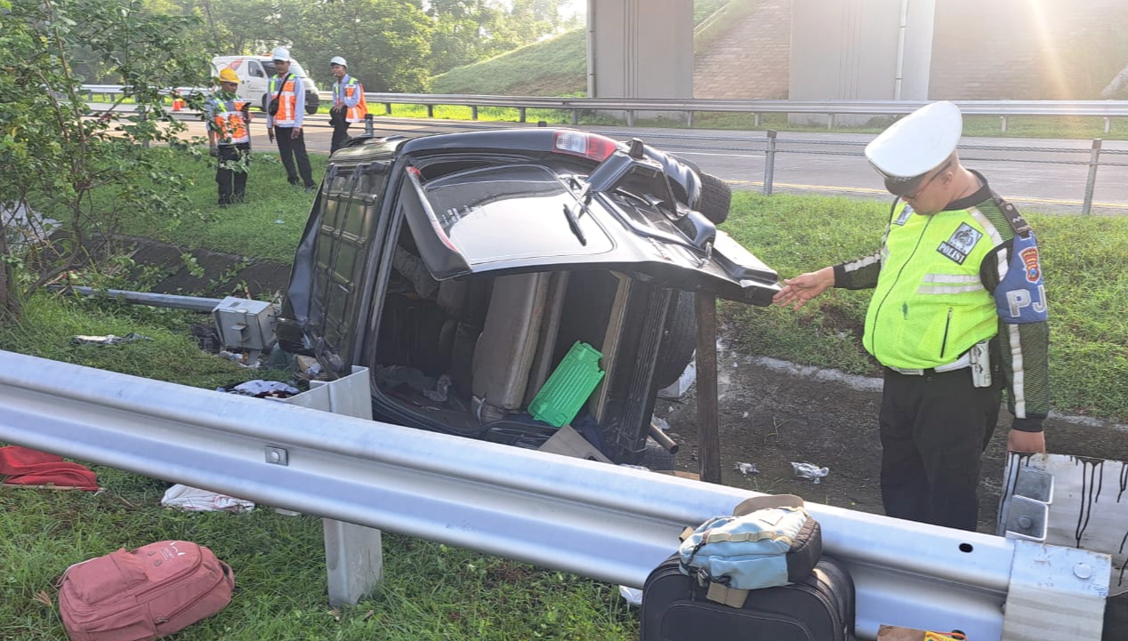 Sudutkota.id – Kecelakaan lalu lintas tunggal terjadi di ruas Tol Jombang–Mojokerto KM 672+700 jalur A, Senin (15/12/2025) pagi. Sebuah mobil Isuzu Panther terguling setelah menabrak tiang CCTV di median jalan. Akibat kejadian ini, lima orang mengalami luka-luka.