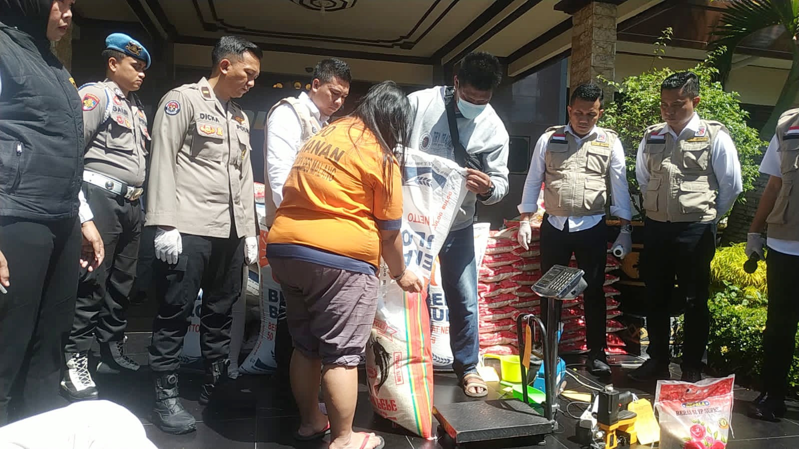 “Saksi dan tersangka memindahkan beras SPHP Bulog kemasan 50 kilogram tersebut ke kemasan kosong yang ukuran 25 kilogram dan 5 kilogram menggunakan gayung, kemudian ditimbang,” ujar Gandha.