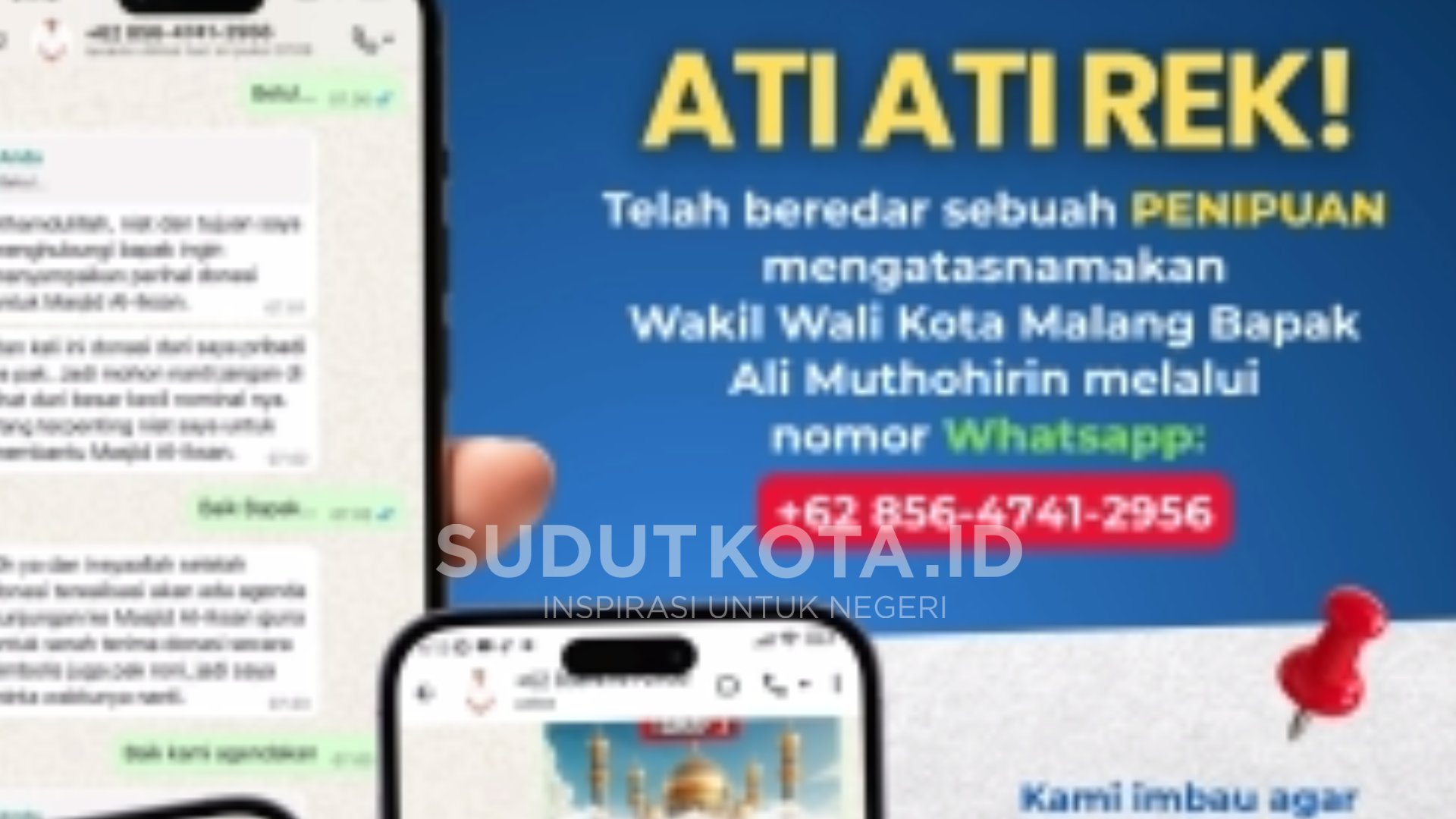Sudutkota.id – Aksi penipuan dengan modus permintaan bantuan dan donasi kembali meresahkan masyarakat. Kali ini, nama Wakil Wali Kota Malang Ali Muthohirin dicatut oknum tidak bertanggung jawab melalui pesan WhatsApp yang disebarkan ke sejumlah warga dan pengurus lembaga keagamaan.