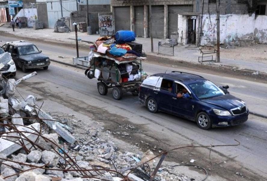 Warga Palestina mengangkut barang-barang mereka saat meninggalkan Rafah. (foto: AFP)