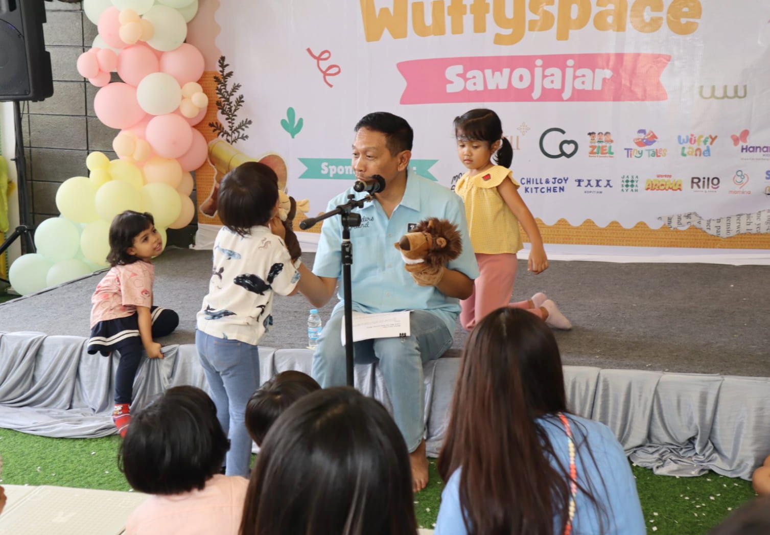 Wali Kota Malang Wahyu Hidayat terlihat akrab dan penuh canda saat membawakan dongeng “Mimi dan Roro” di acara Semarak Setahun Wuffyspace, Sawojajar. (Foto: Sudutkota.id/pro)