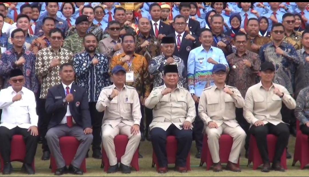 Presiden Prabowo Subianto bersama Menko Inpraskim, Agus Harimurti Yudhoyono (AHY) dan bersama Menteri lainnya saat peresmian SMA Taruna Nusantara Kampus Malang. (Foto: Sudutkota.id/ris)