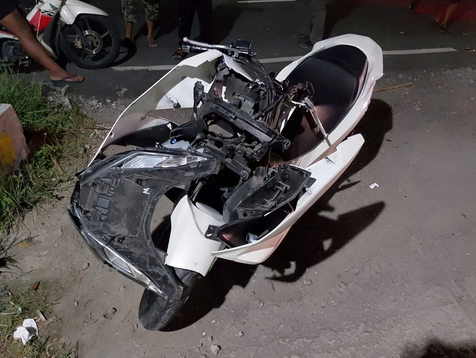 Benturan keras membuat warga sekitar terkejut. Korban terpental dan tergeletak tak bernyawa di samping sepeda motornya yang rusak berat.