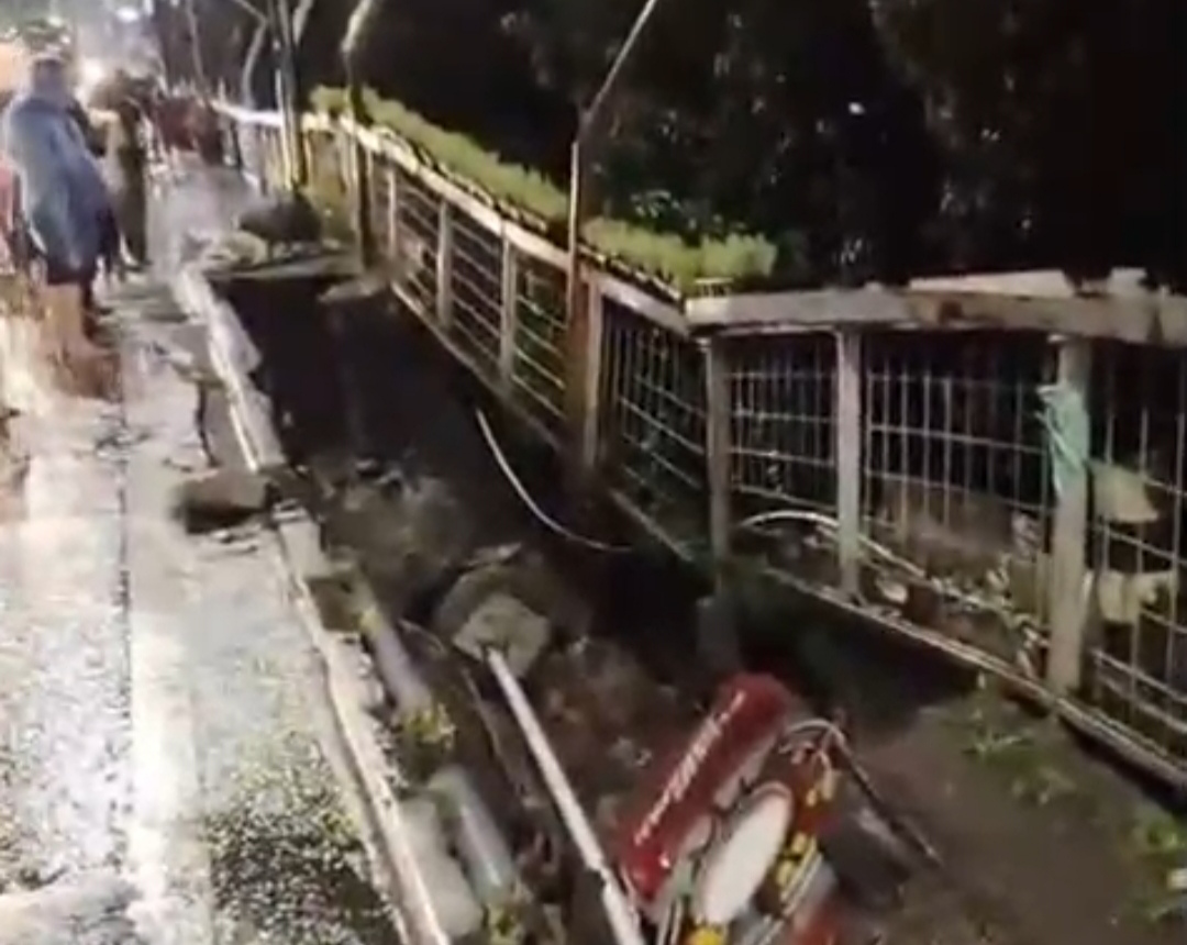 Sudutkota.id – Hujan lebat yang mengguyur kawasan Malang Raya sejak siang hingga malam menyebabkan tembok penahan (plesengan) Jembatan Brantas mengalami longsor, Minggu (23/11/2025). Peristiwa terjadi sekitar pukul 18.00 WIB usai magrib dan memicu kepanikan warga Kampung Tridi, Kelurahan Kesatrian, Kecamatan Blimbing, Kota Malang.