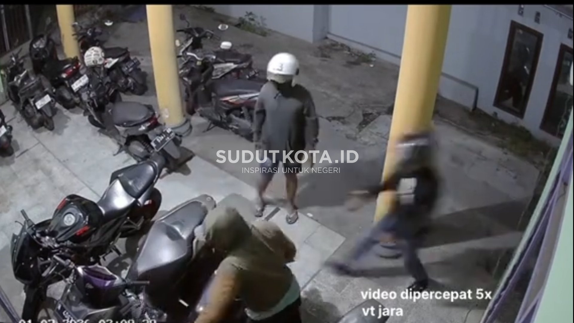 Berdasarkan rekaman CCTV rumah kost, terlihat tiga orang pelaku datang ke lokasi menggunakan sepeda motor. Ketiganya tampak saling berbagi peran. Satu pelaku terlihat mengawasi situasi sekitar, sementara dua pelaku lainnya langsung mengeksekusi pencurian dengan merusak kunci kendaraan.