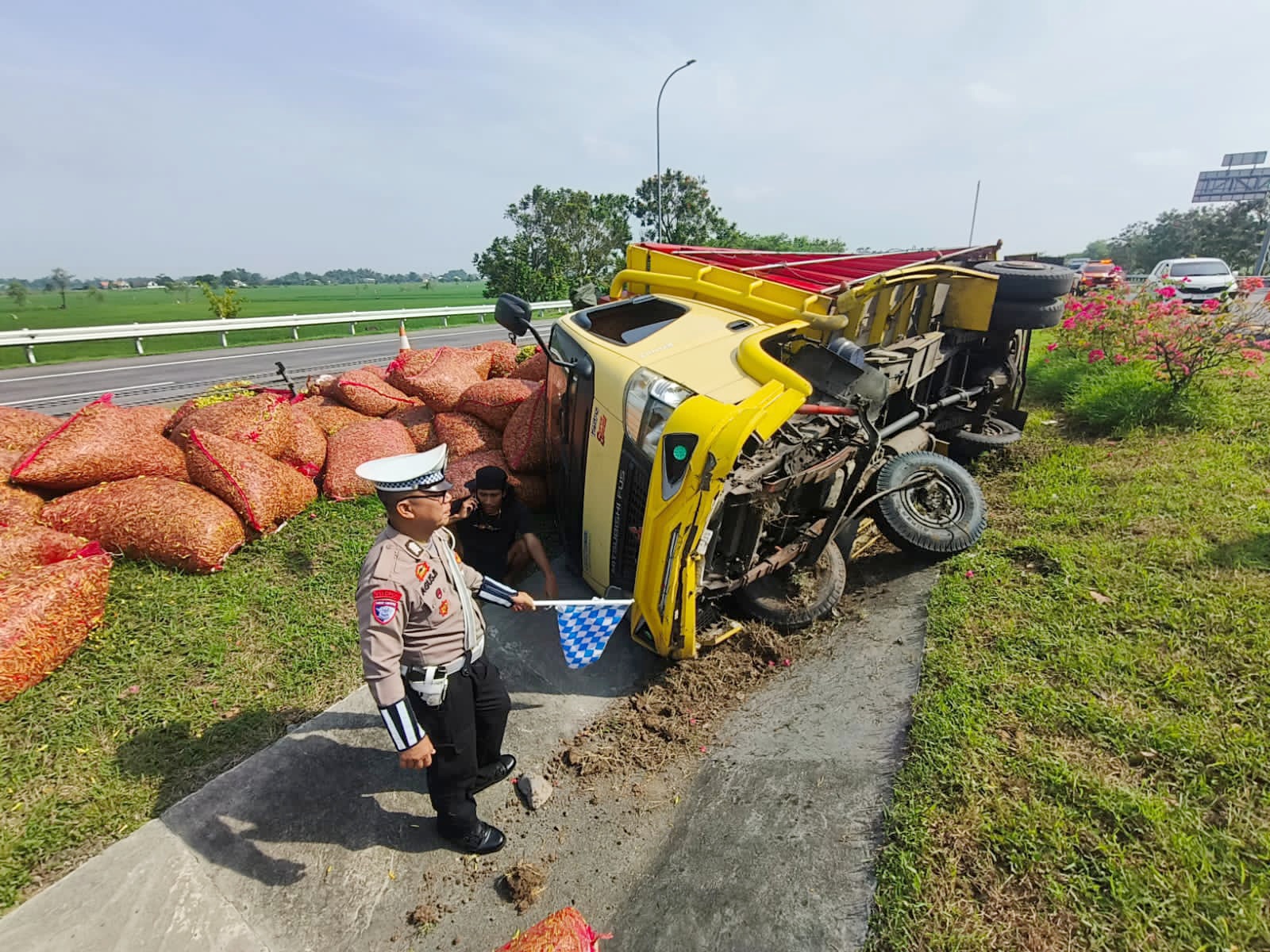 Truk Bermuatan Cabai Alami Kecelakaan di Tol Jombang–Mojokerto, Sopir Diduga Mengantuk