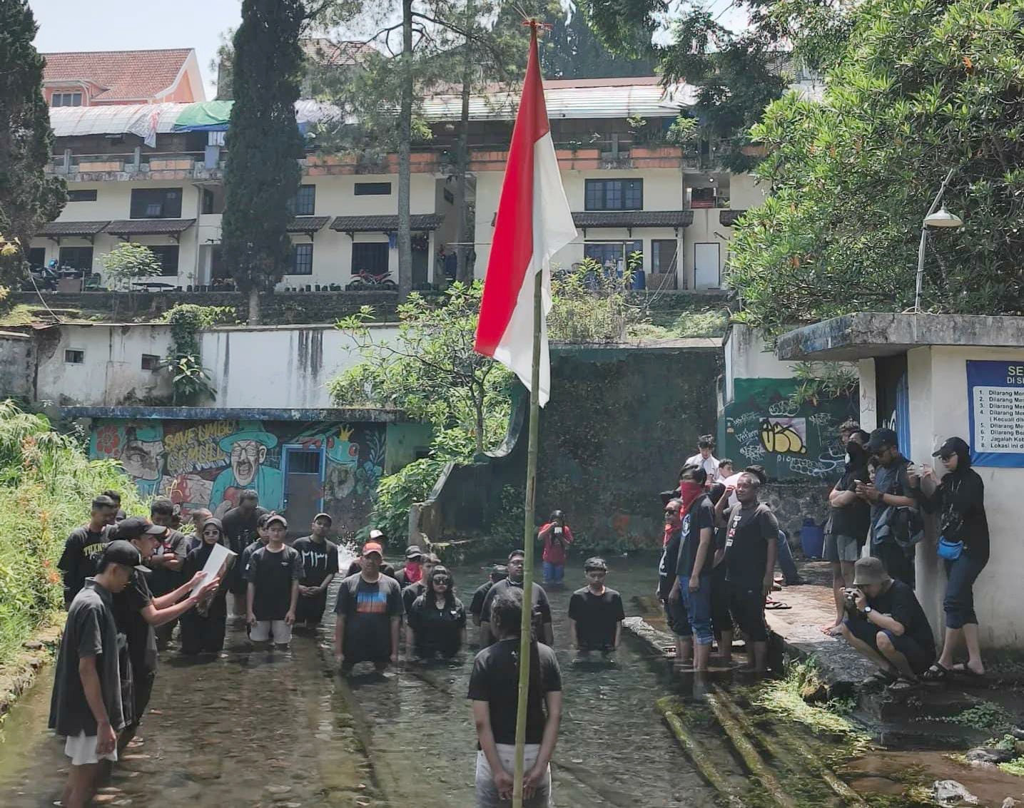 Sudutkota.id – Perayaan Hari Ulang Tahun ke-80 Republik Indonesia di Kota Batu, Jawa Timur, berlangsung dengan cara yang tidak biasa. Puluhan warga Desa Bulukerto, Kecamatan Bumiaji, bersama jaringan aktivis lingkungan dari berbagai daerah Malang Raya, menggelar upacara bendera dengan cara menceburkan badan ke dalam air di Sumber Umbul Gemulo, Minggu (17/8/2025).
